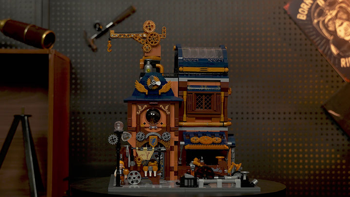 【Immersive Mechanical Light Experience】Building upon steampunk-inspired retro lighting, this interactive display features dynamic effects triggered by model assembly and minifigure interactions.