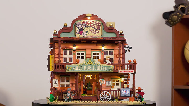 【Immersive Western Nightscape】Thirteen precisely placed light points illuminate the entire western town at night. From the inn's sign to indoor spaces, lighting follows architectural logic to faithfully recreate authentic Old West streetscapes after dusk.